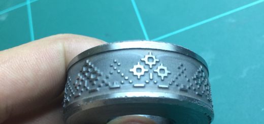 Getting closer now. After the first tests with the piece of pipe, I ordered some turned roller blanks. The vinyl mask used last time wasn’t up to the task though. The final design has to be less than 8 mm wide. This meant that the traditional design, which looks like … Continue reading Electro-etching steel. Part two